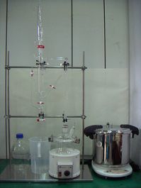 ◎以澳洲茶樹(tea tree)兩公斤當材料為例,使用本設備操作兩小時,約可得到1.5公升花露水,以及含量90%,10ml左右的精油。