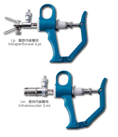 • 提供兩種型式:腹腔內接種用(i.p)與肌肉內接種用(i.m)。