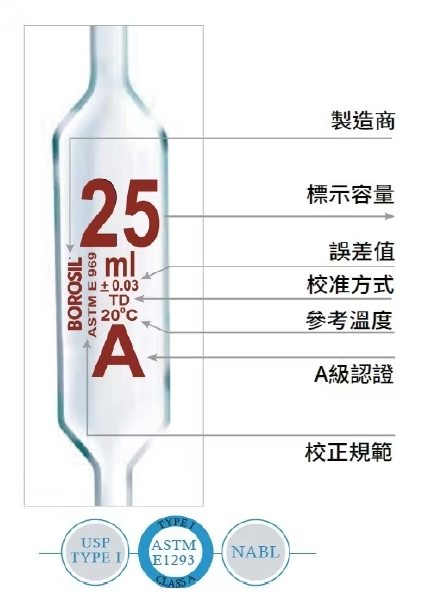 | 原廠編號 | 容量 (mL) | 誤差 (±mL) |