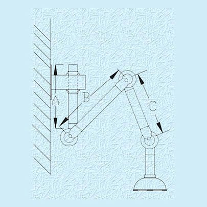 - 說明:為符合操作時最大空間之需求,三段式伸縮導管具有三處可轉動之軸部,每一軸部具有可調之鬆緊鈕使設備可配合